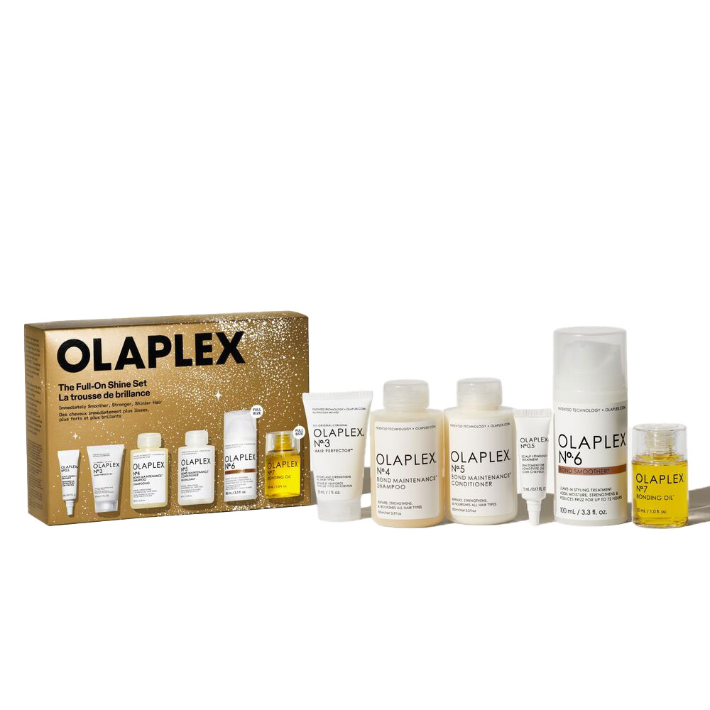 <ul><li>Full-On Shine Haar-Geschenkset</li><li>Limitiertes Set für glänzendes geschmeidiges und kräftiges Haar nach nur einer Anwendung.</li><li>--- ERROR ---</li><li>Verstärkt sofort den Glanz und bietet Hitzeschutz bei 232 ºC/450 ºF Bändigt Frizz und fliegende Haare Reduziert Haarbruch spendet Feuchtigkeit glättet und macht das Haar geschmeidig</li><li>125 % mehr Glanz172 Stunden Frizz-Kontrolle2 90 % glatter besser entwirrbar gepflegter3 1Im Vergleich zu blondiertem Haar ohne Anwendung von OLAPLEX N°.7 Bonding Oil™ 2N°.6 Bond Smoother® 3Bei Verwendung als System von N°.3 N°.4 N°.5</li></ul>