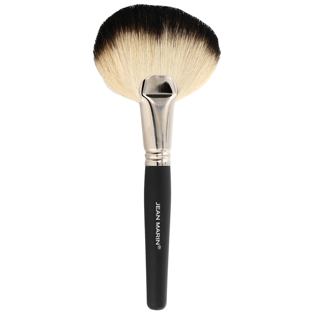 Ein Make-up endet mit dem Auftrag von losem Puder. Er mattiert nicht nur, sondern sorgt den ganzen Tag für Halt. Hier kommt der gefächerte Puderpinsel von Jean Marin ins Spiel, der sanft große Bereich des Gesichts bedeckt.